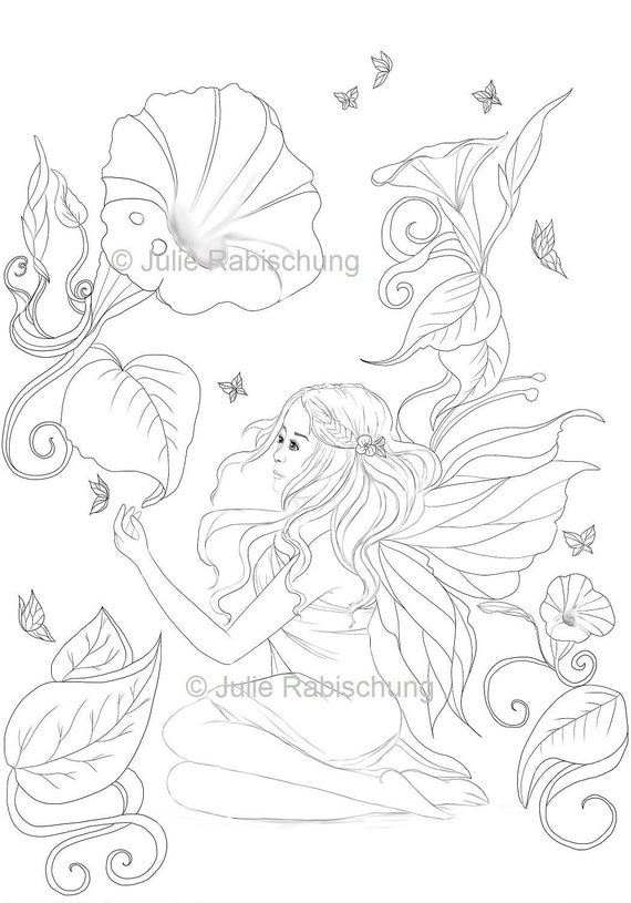 Fairy Coloring Pageflower Fairy Coloring Pagefairy Etsy